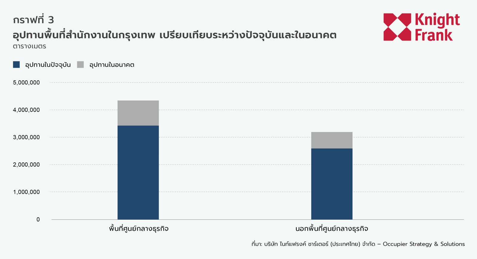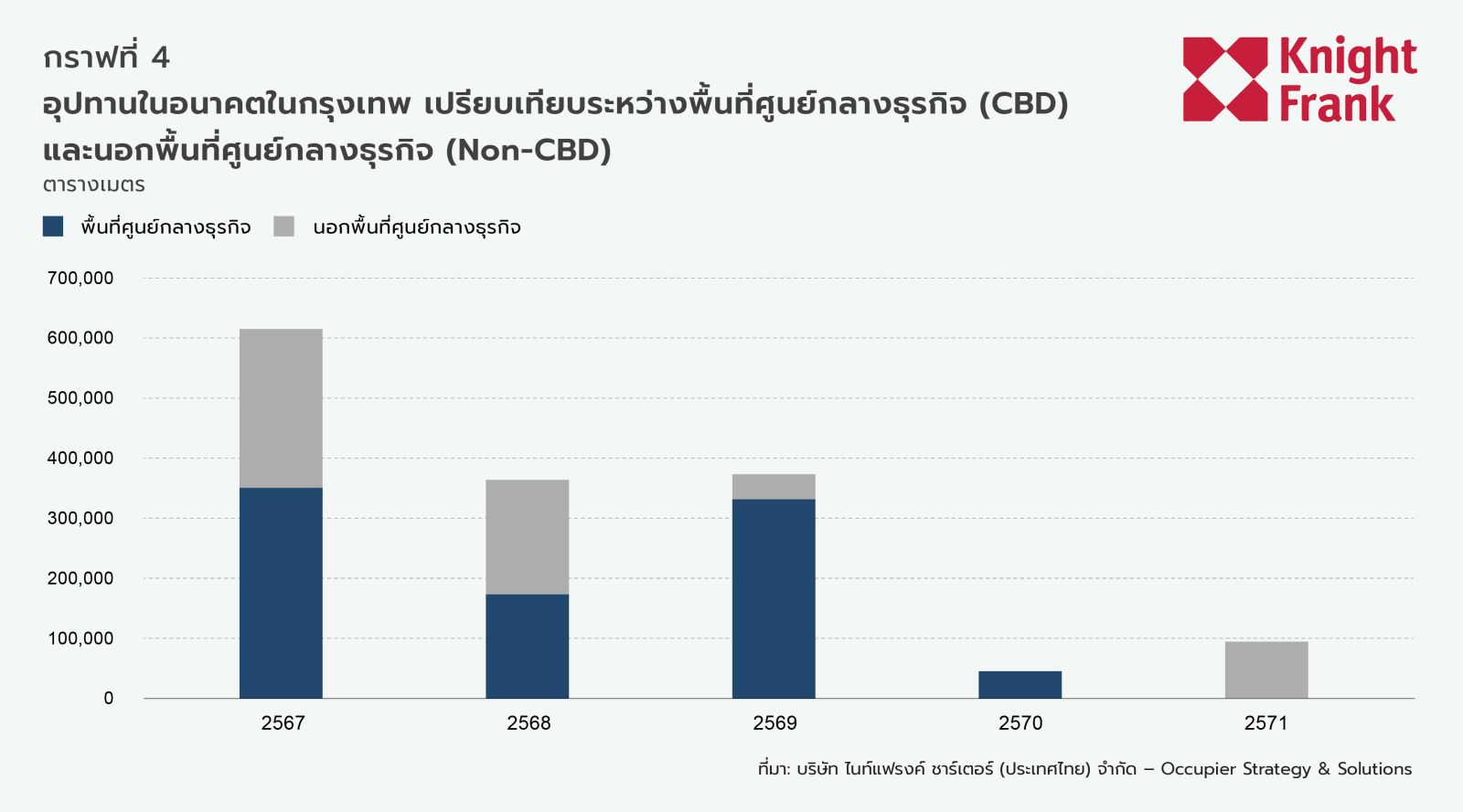มีโครงการใหม่เปิดตัวบนถนนบางนา-ตราดในไตรมาส 1 ปริมาณพื้นที่ให้เช่ารวมทั้งหมดของพื้นที่ให้เช่าในอนาคตยังคงไม่เปลี่ยนแปลงที่ 1.50 ล้านตร.ม. คิดเป็น 25% ของระดับอุปทานในปัจจุบัน 60% ของอุปทานใหม่กระจุกตัวอยู่ในย่านศูนย์กลางธุรกิจ (CBD) อุปทานใหม่ในช่วงปี 2567-2569 คาดว่าจะอยู่ที่ 616,700, 365,000 และ 373,000 ตร.ม. ตามลำดับ
