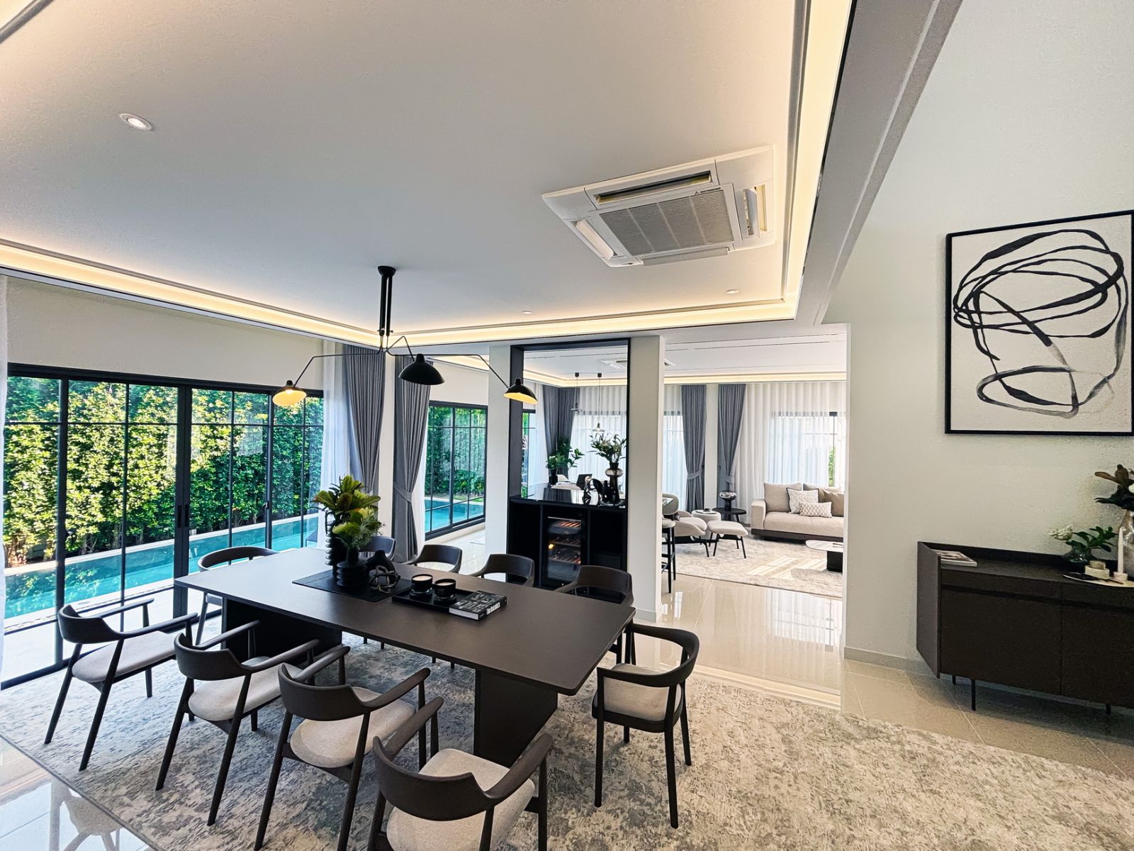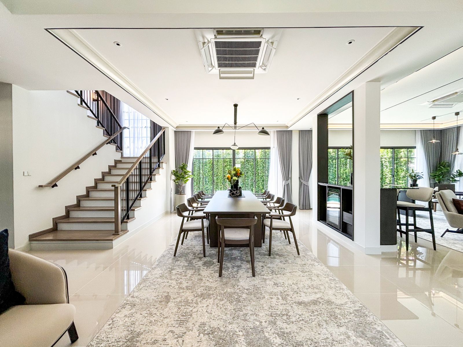 เพื่อตอบโจทย์ความต้องการกลุ่มลูกค้าเป้าหมายที่มีความต้องการบ้านขนาดใหญ่ดีไซน์โปร่งโล่งสบายด้วยการ Combine Space ฟังก์ชันห้องนั่งเล่น และครัวเพื่อให้ลูกค้าเลือกใช้พื้นที่ได้ยืดหยุ่นมากขึ้น ครบทุกฟังก์ชันใช้สอยในบ้าน โดยบ้านทั้ง 2 แบบมี 4 ห้องนอน 5 ห้องน้ำ 2 ห้องพักผ่อน 3 ที่จอดรถ ห้องพระ ส่วนรับแขก ห้องครัว ส่วนรับประทานอาหาร ห้องแม่บ้าน และส่วนพื้นที่ซักรีด พื้นที่ส่วนกลางที่ลงต้นไม้ใหญ่ให้ความร่มรื่น และช่วยเพิ่มบรรยากาศการอยู่อาศัย มี Pavilion ไว้สำหรับนั่งพักผ่อนที่สวนส่วนกลาง