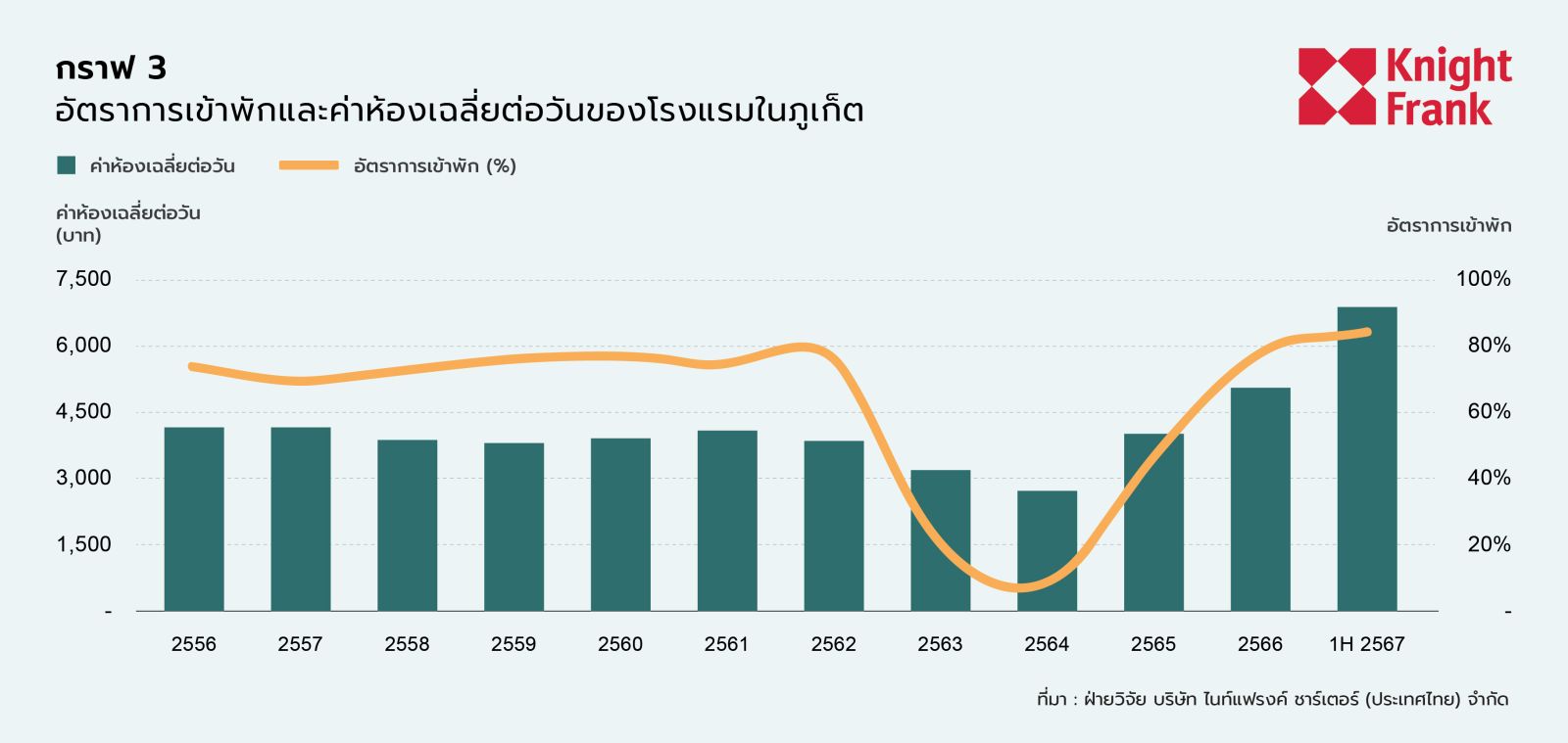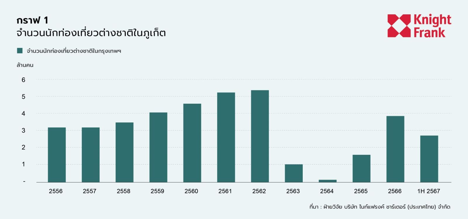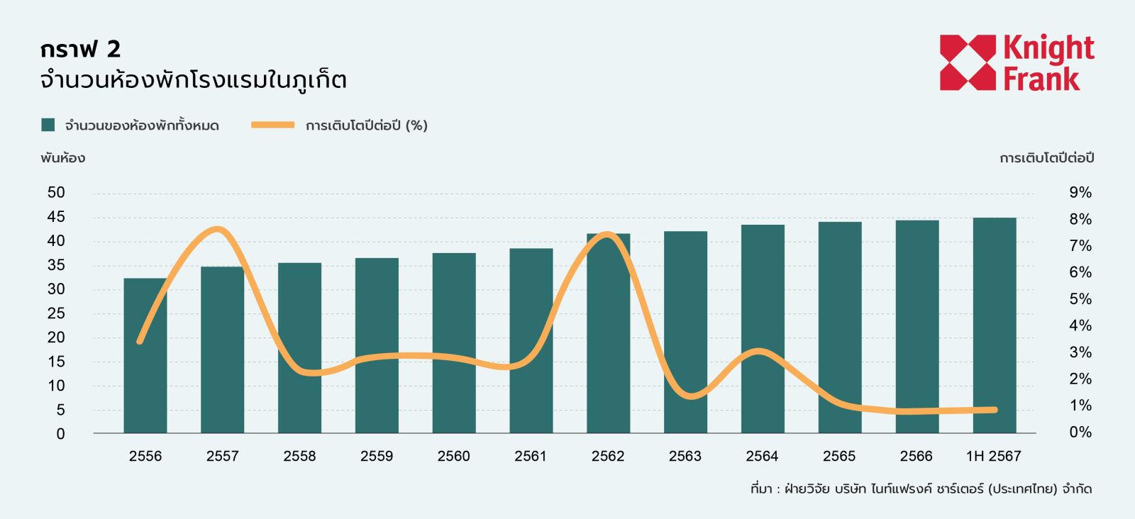 อุตสาหกรรมการท่องเที่ยวของภูเก็ตแสดงถึงการฟื้นตัวที่แข็งแกร่งในครึ่งปีแรกของปี 2024 โดยมีจำนวนนักท่องเที่ยวรวมถึง 4.3 ล้านคน ต่ำกว่าระดับก่อนเกิดโรคระบาดเพียง 7% จำนวนนักท่องเที่ยวต่างชาติพุ่งสูงขึ้นถึง 2.6 ล้านคน ปรับตัวเพิ่มขึ้นกว่า 42% เมื่อเทียบกับปีต่อปี ซึ่งใกล้เคียงกับตัวเลขก่อนเกิดโรคระบาด คาร์ลอส มาร์ติเนซ ผู้อำนวยการฝ่ายวิจัยและที่ปรึกษาของ Knight Frank เน้นย้ำว่า "การปรับปรุงความสามารถในการขนส่งทางอากาศคาดว่าจะช่วยส่งเสริมการเติบโตต่อไปในครึ่งปีหลัง"