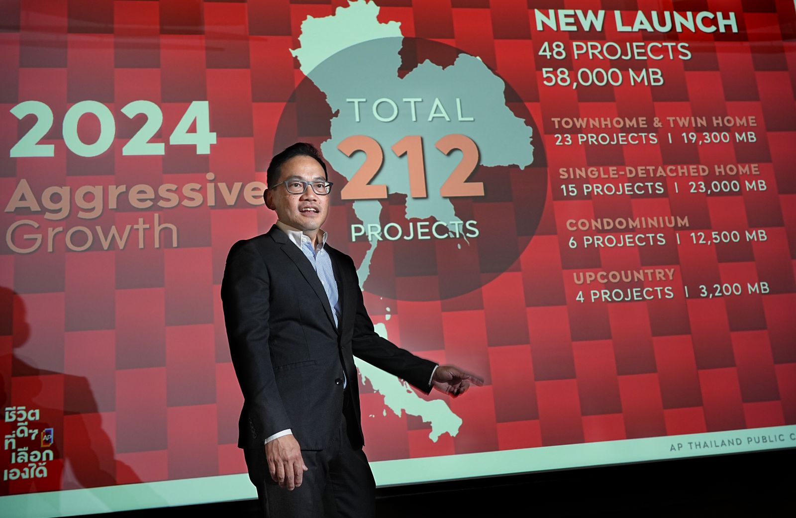 โดยปี 2567 นี้บริษัทฯ ตั้งเป้ามีโครงการเอพีพร้อมขายอยู่ทั่วประเทศ จำนวน 212 โครงการ เพื่อครองภาพการเป็นที่หนึ่งในอุตสาหกรรมพัฒนาอสังหาริมทรัพย์เพื่อการอยู่อาศัย ทั้งในด้านยอดขาย รายได้ และผลกำไร โดยในปีที่ผ่านมา บริษัทฯ สามารถสร้างยอดขายได้สูงถึง 51,390 ล้านบาท ด้านรายได้รวมจากสินค้ากลุ่มแนวราบ กลุ่มคอนโดมิเนียม (100% JV) และธุรกิจอื่นๆ สูงถึง 48,757 ล้านบาท และกำไรสุทธิมากถึง 6,054 ล้านบาท ทั้งนี้ เป้าหมายการกระจายพอร์ตสินค้าทั่วประเทศไทย 212 โครงการนั้น ประกอบด้วยการเปิดตัวสินค้าใหม่จำนวน 48 โครงการ มูลค่า 58,000 ล้านบาท เป็นบ้านเดี่ยว 15 โครงการ มูลค่า 23,000 ล้านบาท ทาวน์โฮมและบ้านแฝด จำนวน 23 โครงการ มูลค่า 19,300 ล้านบาท คอนโดมิเนียม 6 โครงการ มูลค่า 12,500 ล้านบาท และโครงการในต่างจังหวัด 4 โครงการ มูลค่า 3,200 ล้านบาท และโครงการที่อยู่ระหว่างการขาย (ongoing projects) จำนวน 164 โครงการ ซึ่งจะเป็นคีย์สำคัญในการสร้างรายได้อย่างต่อเนื่อง (cash inflow