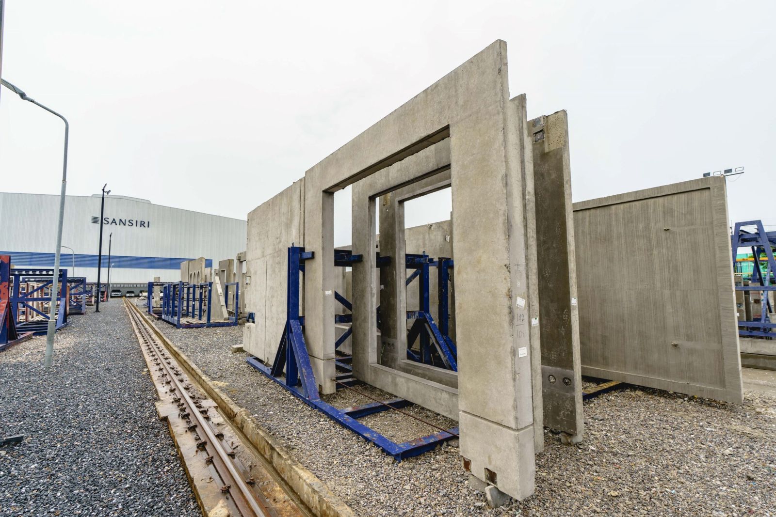 ขณะที่โรงงานพรีคาสท์ของแสนสิริ มีอยู่ 4 แห่ง กำลังการผลิต (สร้างบ้าน) 3,700 หลังต่อปี เป็นโรงงานพรีคาสท์ สีเขียวรายแรกในไทย นับเป็นส่วนหนึ่งของการผลักดันพันธกิจองค์กรด้านความยั่งยืน โดยมีการติดตั้งหลังคาโซลาร์เพื่อนำพลังงานแสงอาทิตย์มาผลิตกระแสไฟฟ้าภายในโรงงาน, การวางนโยบายการบริหารจัดการของเสียภายในโรงงาน และมีการจัดการขยะที่มีประสิทธิภาพสูง (หรือมีการจัดการขยะที่เหลือจากการเทชิ้นงานคอนกรีตสำเร็จรูปเพื่อนำกลับมาใช้ใหม่ได้ถึง 99%) ส่งผลให้ได้รับการรับรองด้วย ISO9001 & ISO14001 และได้รับการรับรองจาก Accreditation Body, NAC รวมทั้งได้รับการตรวจประเมินตามหลักเกณฑ์จนได้รับการรับรองฉลากเขียว จากกระทรวงอุตสาหกรรม