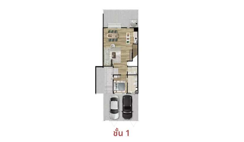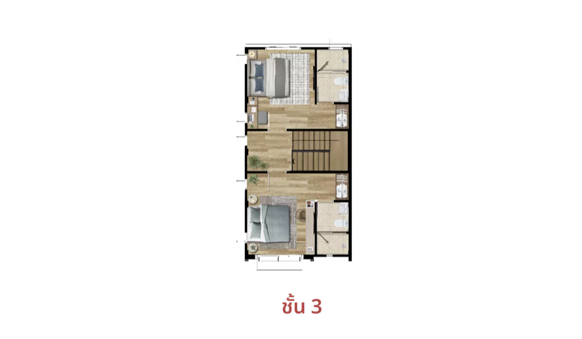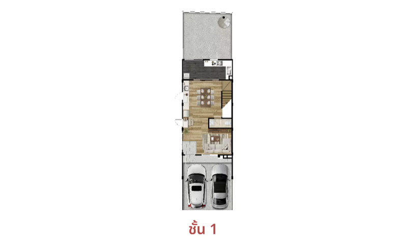 - ทาวน์โฮม 3 ชั้น ขนาด 205 ตร.ม. มี 3 ห้องนอน 4 ห้องน้ำ และที่จอดรถ 2 คัน