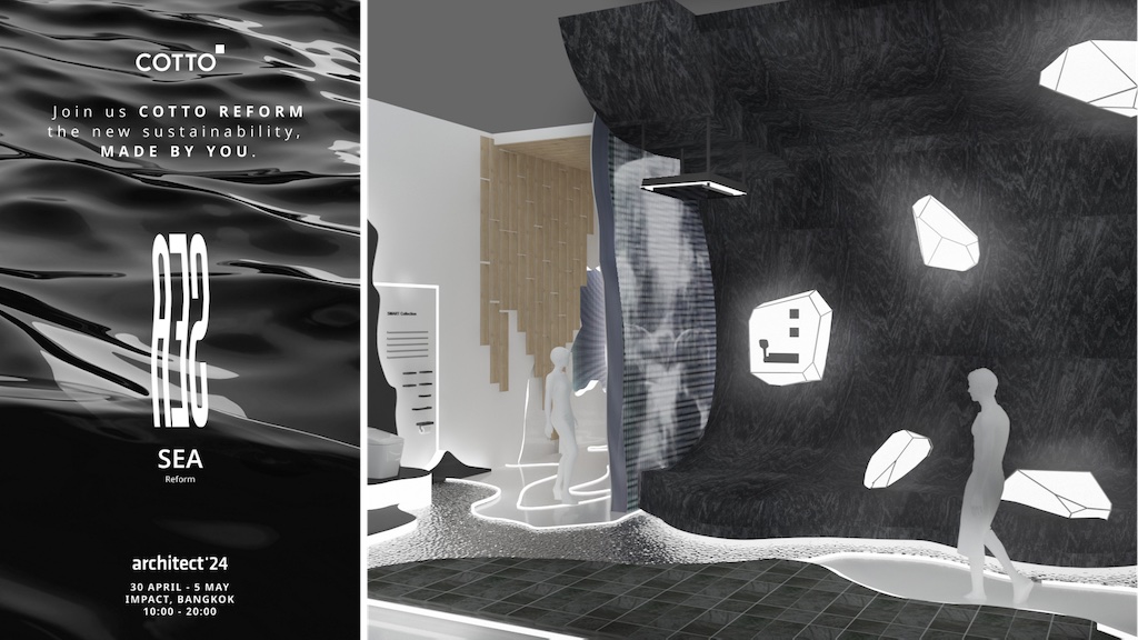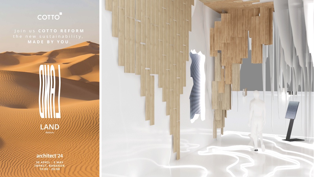 สำหรับ Booth Experience ของ COTTO ในปีนี้ มาในคอนเซปต์ ‘reform the new sustainability, made by you.’ โดยดึงคำว่า REFORM มาเป็นจุดตั้งต้นแนวคิด ด้วยมีความหมายแอบแฝงได้หลายนัยยะ ไม่ว่าจะเป็น การปรับความคิด การเปลี่ยนแปลงกฎเกณฑ์ ไปจนถึงที่เราต่างตั้งคำถาม ว่าวันนี้ การที่โลกใบนี้ REFORM ตัวเองอยู่ตลอดเวลาและเร็วกว่าที่คิด COTTO ในฐานะผู้ผลิต ผู้บริโภค เราเปลี่ยนแปลง ปรับตัว เพื่อช่วยโลกอย่างไรบ้าง?!  ซึ่งที่ผ่านมา COTTO ได้พัฒนากระบวนการรักษ์โลก ไปสู่การเปิดมุมมองจากผู้ร่วมธุรกิจและผู้เชี่ยวชาญ เพื่อความเป็นอยู่และสุขภาวะที่ดีของของผู้คน และส่งผลกระทบต่อโลกน้อยที่สุด ทั้งนี้ จนกว่าจะไปสู่เป้าหมายใหญ่ที่เรากำลังจะเดินทางไป คือ NET ZERO Carbon Emission ภายในปี 2050 งาน  “สถาปนิก’67” นับเป็นอีกหนึ่งก้าวเล็กๆ ให้ COTTO ได้โชว์ไอเดียสรรค์สร้างงานดีไซน์ให้เป็นที่ประจักษ์ ให้นักออกแบบได้ตระหนักถึงความสำคัญของการเลือกใช้วัสดุ ผลิตภัณฑ์ที่เป็นมิตรต่อโลก
