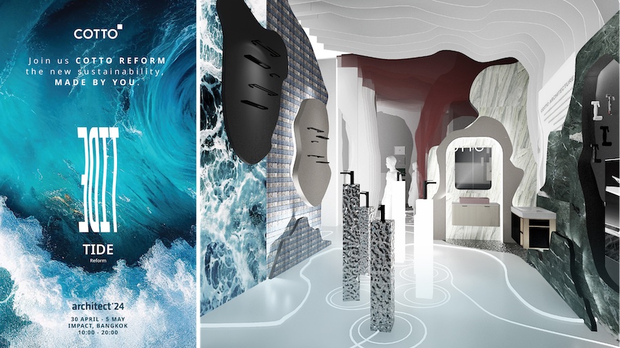 COTTO ภายใต้ SCG Decor จึงผุดไอเดียล้ำ ยกนวัตกรรมวัสดุตกแต่ง จัด Art Installation ในคอนเซปต์ COTTO ‘reform the new sustainability, made by you.’ มาไว้ในงาน “สถาปนิก’67” ซึ่งปีนี้มาในธีม ‘Collective Language: สัมผัสสถาปัตย์’ ที่เป็นการนำเสนอถึงการสื่อสารด้วยภาษาที่ไร้ขอบเขต เพื่อเป็นอีกหนึ่ง Journey ในการสื่อสารสุดท้าทาย ผ่านการนำสินค้า กระเบื้องสุขภัณฑ์ ก๊อกน้ำ อีกทั้งอุปกรณ์ภายในห้องน้ำ ผสานด้วยนวัตกรรมวัสดุที่ถูกคิดมาเพื่อลดปัญหาวิกฤติสิ่งแวดล้อม มาจำลองสถานการณ์ที่ Booth Experience อาทิ การหยิบยก Iceberg Crack สัญลักษณ์การเปลี่ยนแปลงตลอดเวลาของภาวะโลกร้อน เพื่อสะท้อนถึง Climate Change หรือ การเปลี่ยนแปลงของสภาพภูมิอากาศ ที่กระทบกับคนทั่วโลกในระดับมหภาค พร้อมด้วยอีก 4 โซน Reform ได้แก่ Sea Reform, Land Reform, Temperature Reform และ Tides Reform ให้เหล่านักออกแบบ ที่เปรียบเสมือนผู้นำในการสรรค์สร้างที่อยู่อาศัย ได้มาร่วมสัมผัสในงานฯ และเล็งเห็นถึงความสำคัญในการเลือกวัสดุและผลิตภัณฑ์ ซึ่งเป็นจุดเริ่มต้นในการลดการใช้ทรัพยากรที่ทำลายสิ่งแวดล้อมได้มากขึ้น พร้อมร่วมกัน REFORM เพื่อเปลี่ยนโลกให้ดีไปกว่าเดิมได้
