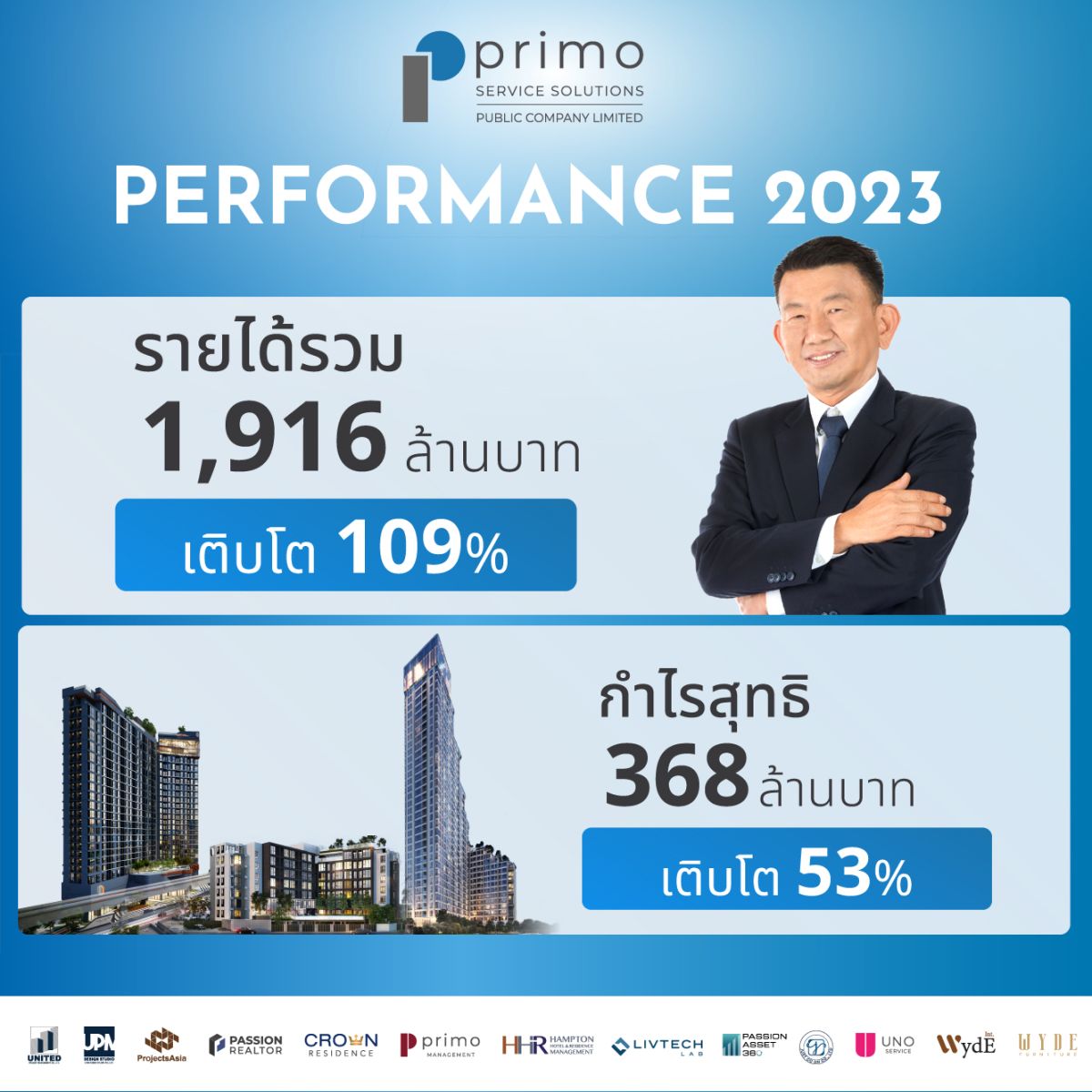 นายสุรินทร์ สหชาติโภคานันท์ ประธานเจ้าหน้าที่บริหาร บริษัท พรี​โม เซอร์วิส โซลูชั่น จำกัด (มหาชน) หรือ PRI ผู้นำธุรกิจการให้บริการเกี่ยวเนื่องกับอสังหาริมทรัพย์สมัยใหม่แบบครบวงจร เปิดเผยว่า ภาพรวมผลการดำเนินงานในปี 2566 ที่ผ่านมา บริษัทมีรายได้รวมอยู่ที่ 1,916 ล้านบาท เติบโตขึ้น 109% เมื่อเทียบกับปี 2565 และเป็นรายได้ที่เกินกว่าเป้ารายได้ที่ตั้งเอาไว้ 1,300 ล้านบาท และมีกำไรสุทธิรวม อยู่ที่ 368 ล้านบาท เพิ่มขึ้น 53% เมื่อเทียบกับช่วงเดียวกันของ ปี 2565 โดยในไตรมาส 4/2566 (ต.ค.-ธ.ค.2566) ถือเป็นหนึ่งในส่วนสำคัญ ที่ช่วยผลักดันให้บริษัทฯ มีการเติบโตทะลุเป้าหมาย โดยมีรายได้สูงถึง 570 ล้านบาท เติบโต 84% เมื่อเทียบกับช่วงเดียวกันของปี 2565