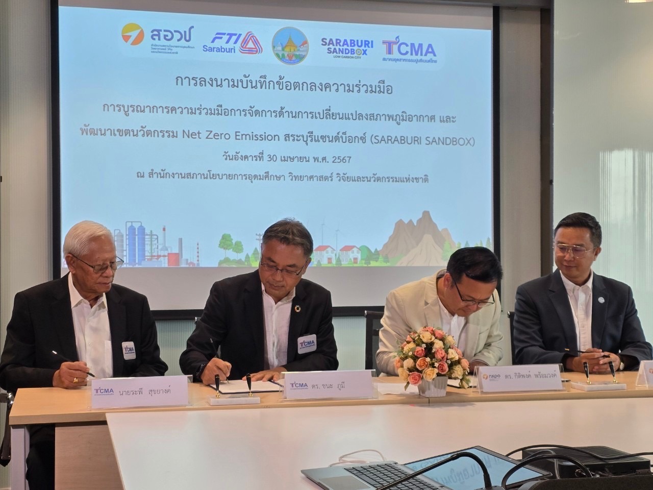 ( 2 พฤษภาคม 2567) สมาคมอุตสาหกรรมปูนซีเมนต์ไทย (TCMA) และสำนักงานสภานโยบายการอุดมศึกษา วิทยาศาสตร์ วิจัยและนวัตกรรมแห่งชาติ (สอวช.) ร่วมลงนาม “บันทึกข้อตกลงความร่วมมือการบูรณาการความร่วมมือการจัดการด้านการเปลี่ยนแปลงสภาพภูมิอากาศ และพัฒนาเขตนวัตกรรม Net Zero Emission สระบุรีแซนด์บ็อกซ์ (SARABURI SANDBOX)” บรรลุเป้าหมาย Net Zero Emission