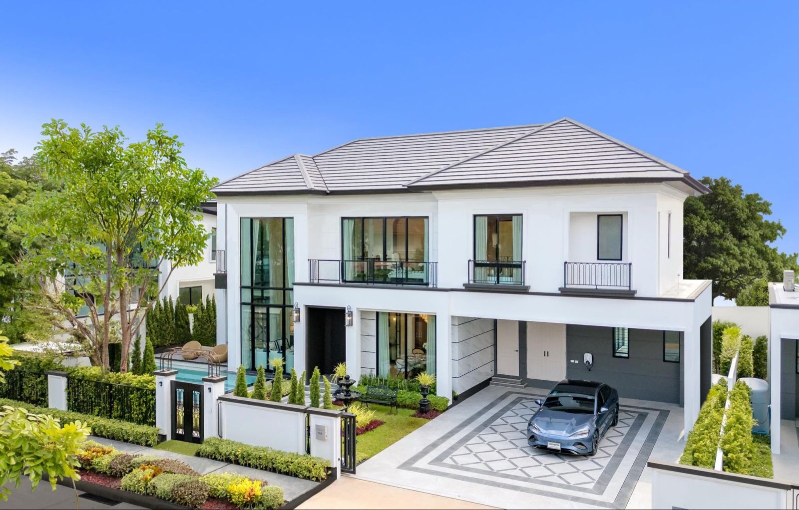 ทุกหลัง ภายในโครงการแวดล้อมพื้นที่สีเขียว ที่ช่วยบดบังสายตาเพิ่มความเป็นส่วนตัว และสร้างอากาศบริสุทธิ์ ส่วนแบบบ้านในโครงการออกแบบสไตล์ ‘Modern Irish Classic’ บ้านหน้ากว้างที่ได้แรงบันดาลใจจากเมืองเบล็สซิงตัน ประเทศไอร์แลนด์ เมืองที่ได้ชื่อว่ามีความเงียบสงบและสวยงาม สะท้อนคุณค่าจากความเป็นส่วนตัวที่แท้จริง