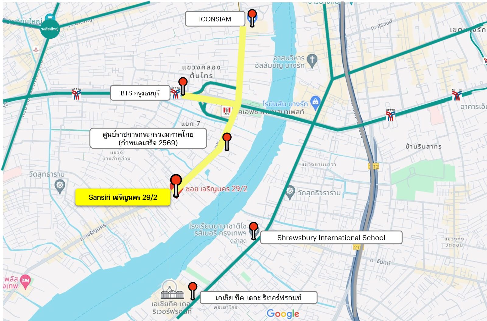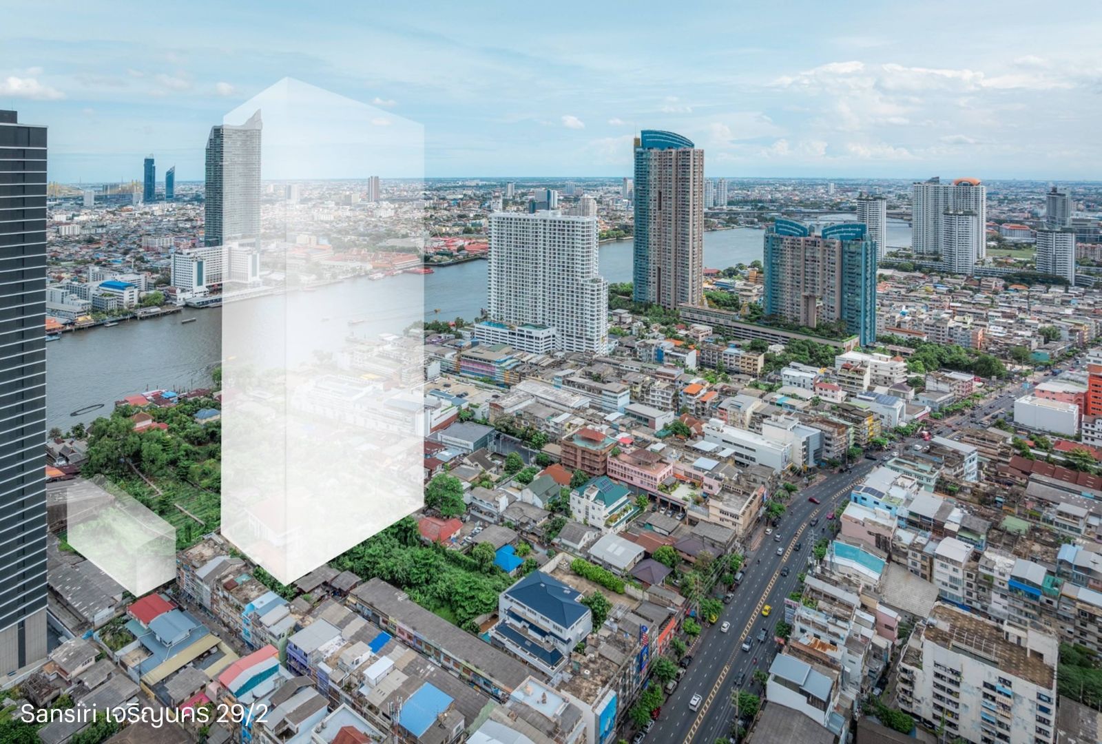 เตรียมรอกันได้เลย วิวจริง ให้จริง! แสนสิริ ปล่อยพิกัดภาพโลเคชั่นและวิวแม่น้ำครั้งแรก กับโครงการคอนโดมิเนียมใหม่ ในรูปแบบ one-of-a-kind ย่านเจริญนคร ซอย 29/2 บนพื้นที่ประมาณ 6 ไร่ กับตึกสูง High Rise 44 ชั้น 1 อาคาร และตึก Low Rise 1 อาคาร ที่ถือว่าเป็น Rare item ของโครงการเลยก็ว่าได้ มาพร้อมกับดีไซน์ที่ออกแบบมาเพื่อ take view วิวแม่น้ำแบบจัดเต็ม!! ได้ทั้งจากห้องพัก และส่วนกลาง เต็มอิ่มกับสุดยอดวิวแม่น้ำ ไม่มีตึกบัง ขอให้ทุกคนอดใจรอ! กับราคาเด็ดที่พลาดไม่ได้แน่นอน ส่วนพิกัดทำเลนั้นไม่ต้องพูดถึง เพราะอยู่ตรงข้าม Shrewsbury International School แถมเยื้องกับ Asiatique The River Front และใกล้ ICONSIAM แลนด์มาร์กระดับโลก เดินทางสะดวกเพียง 5 นาทีถึง BTS กรุงธนบุรี เท่านั้น