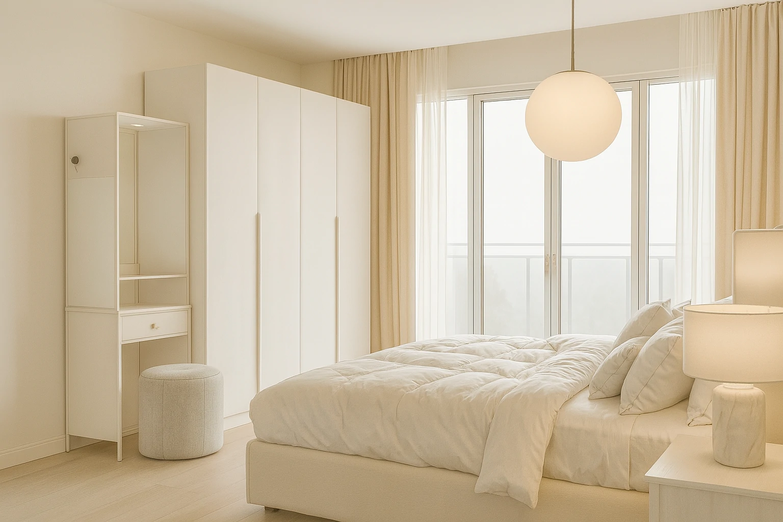 ห้องนอนในสไตล์ Parisian เน้นความ อบอุ่น โรแมนติก และหรูหราแบบเรียบง่าย ใช้โทนสีอ่อน เช่น ขาว ครีม หรือพาสเทลอ่อน ตกแต่งด้วย เตียงเหล็กดัดหรือไม้แกะสลัก, ผ้าม่านโปร่งบาง และโคมไฟคริสตัลเล็ก ๆ ที่ให้แสงนุ่มนวล เสริมด้วยพรมลายคลาสสิกหรือภาพศิลป์เหนือหัวเตียง ให้บรรยากาศห้องดูสงบ แต่แฝงด้วยความหรูหราและเสน่ห์แบบปารีส