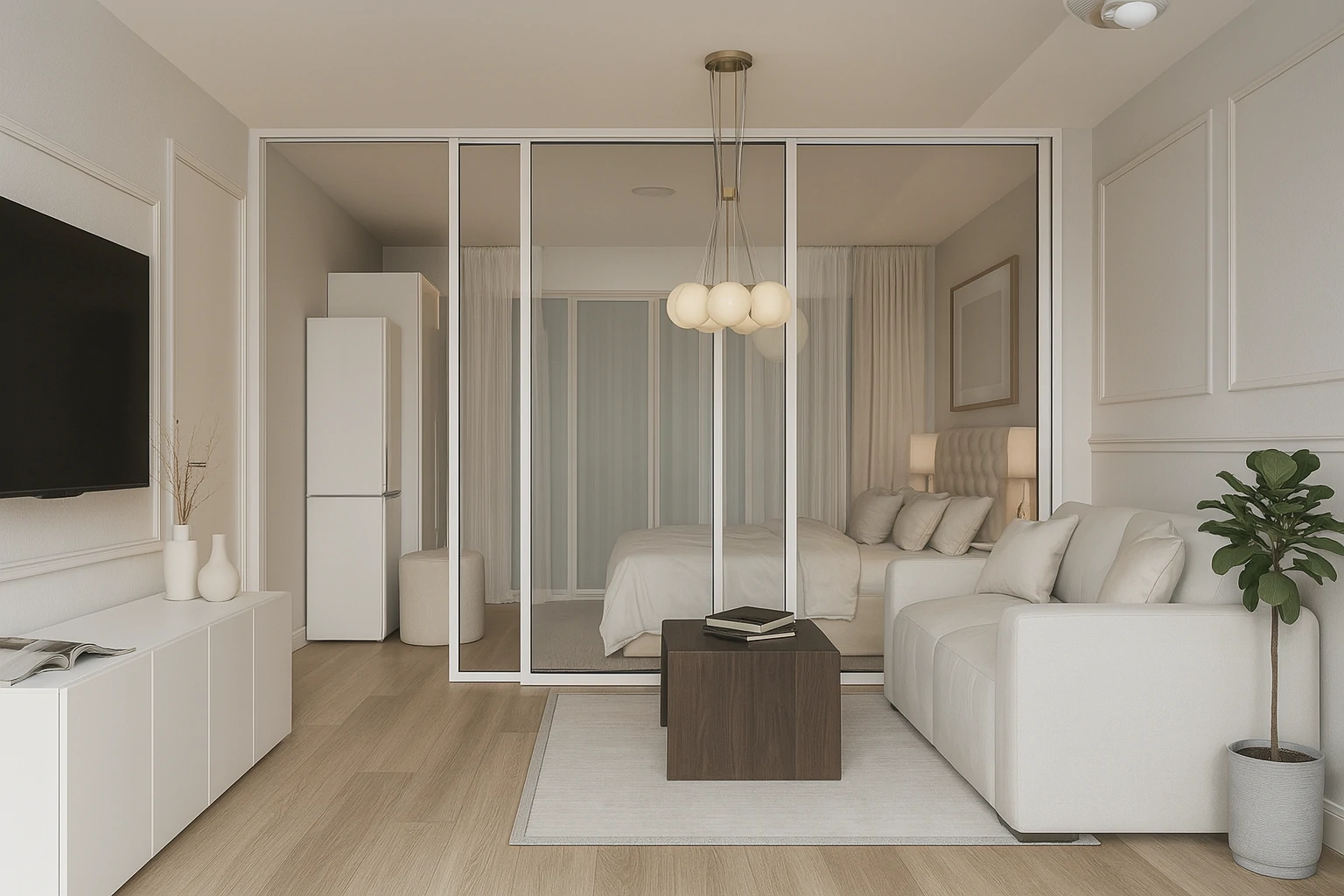 ผลลัพธ์คือห้องที่ทั้งสวย เรียบหรู และใช้งานได้จริงทุกตารางเมตร
