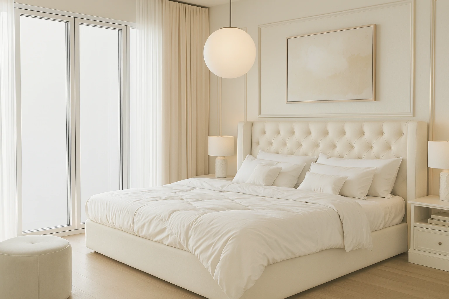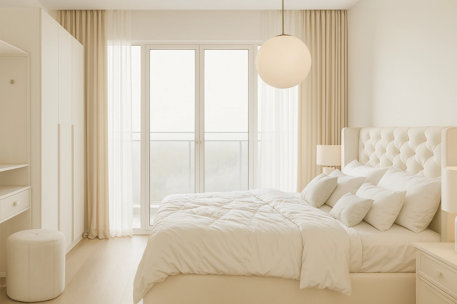 ห้องนอนในสไตล์ Parisian เน้นความ อบอุ่น โรแมนติก และหรูหราแบบเรียบง่าย ใช้โทนสีอ่อน เช่น ขาว ครีม หรือพาสเทลอ่อน ตกแต่งด้วย เตียงเหล็กดัดหรือไม้แกะสลัก, ผ้าม่านโปร่งบาง และโคมไฟคริสตัลเล็ก ๆ ที่ให้แสงนุ่มนวล เสริมด้วยพรมลายคลาสสิกหรือภาพศิลป์เหนือหัวเตียง ให้บรรยากาศห้องดูสงบ แต่แฝงด้วยความหรูหราและเสน่ห์แบบปารีส