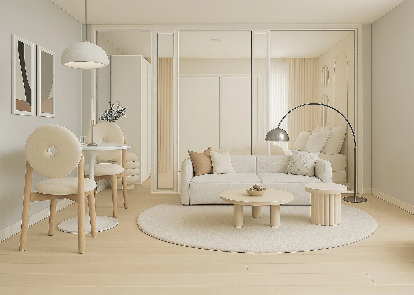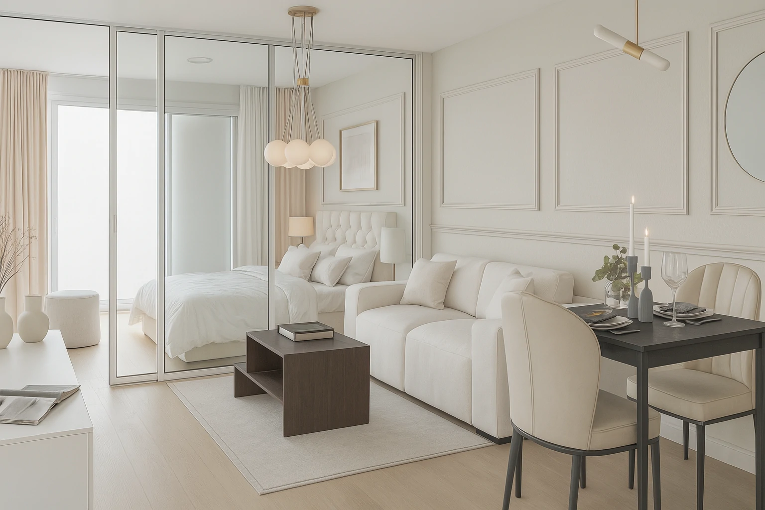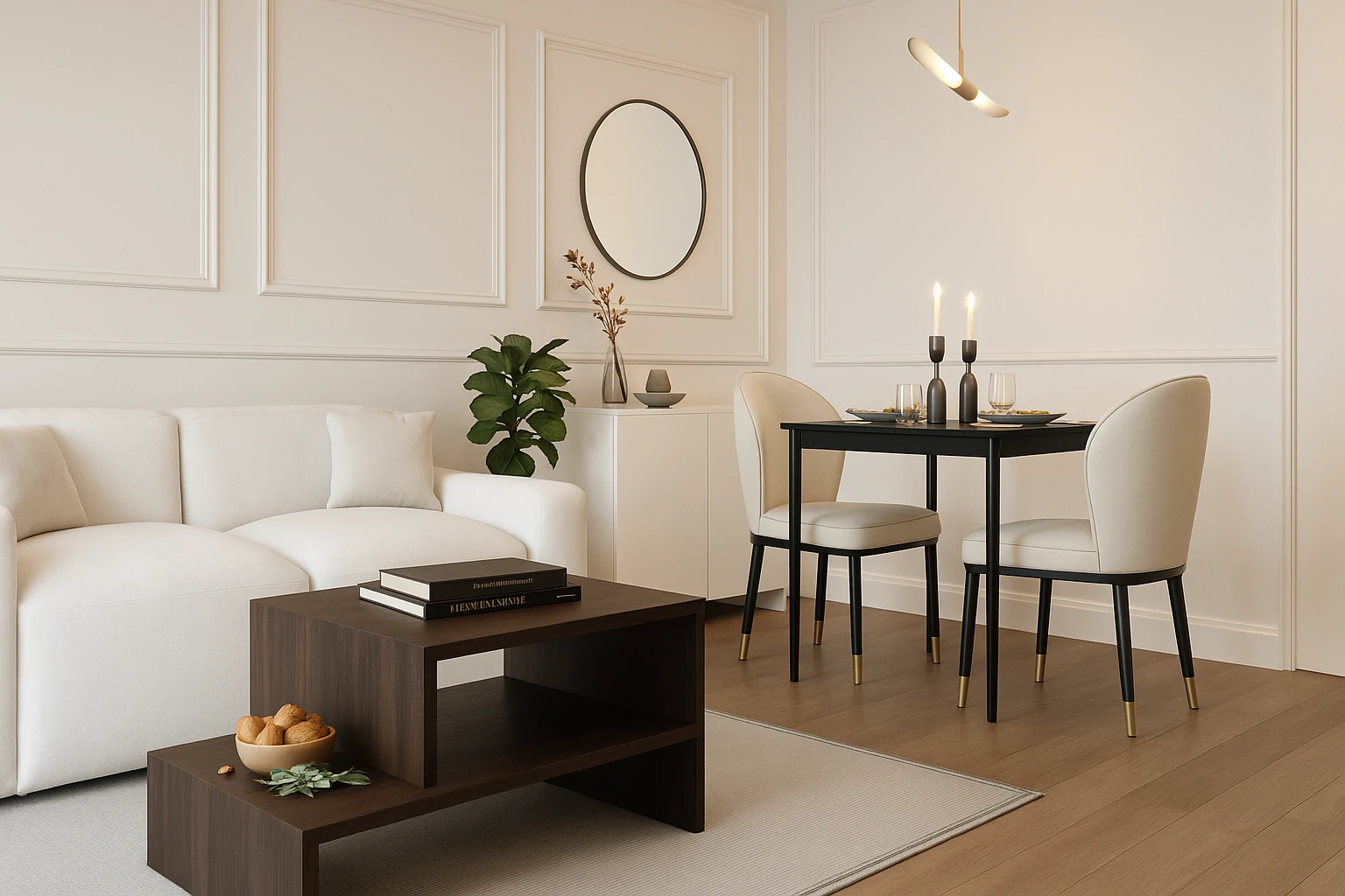 ห้องรับแขกในสไตล์ Parisian คือหัวใจของบ้านที่เต็มไปด้วย ความสง่างาม และความมีชีวิตชีวา มักใช้โทนสี ขาวและครีม ผสมกับเฟอร์นิเจอร์วินเทจ เช่น โซฟาบุผ้ากำมะหยี่ โต๊ะกลางไม้แกะสลัก และกระจกบานใหญ่ที่สะท้อนแสง ธรรมชาติ ตกแต่งเพิ่มเติมด้วยโคมไฟระย้า ภาพศิลป์ หรือแจกันดอกไม้สด เพื่อสร้างบรรยากาศที่ทั้งหรูหราและอบอุ่น ให้แขกผู้มาเยือนสัมผัสได้ถึงรสนิยม ที่โดดเด่น